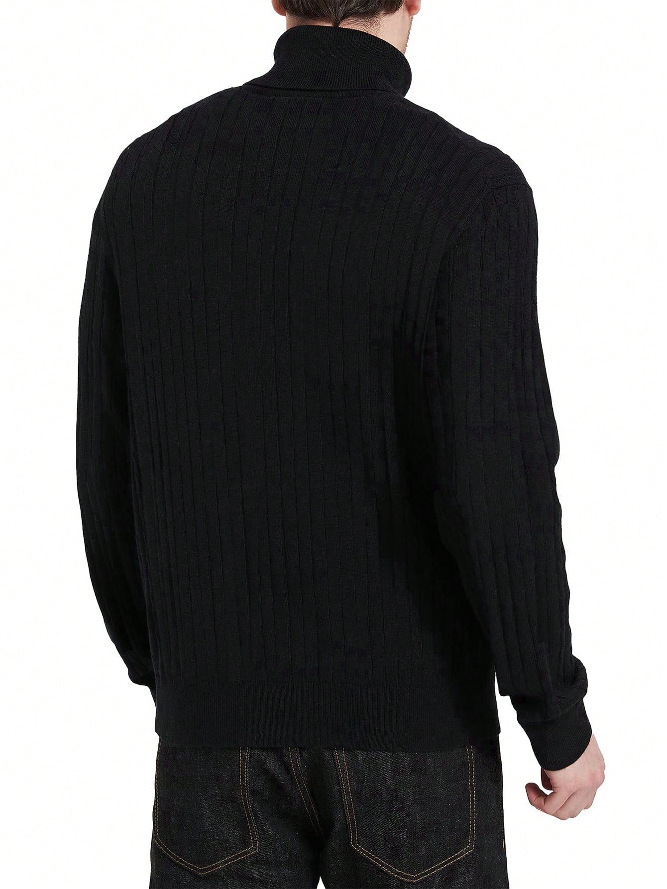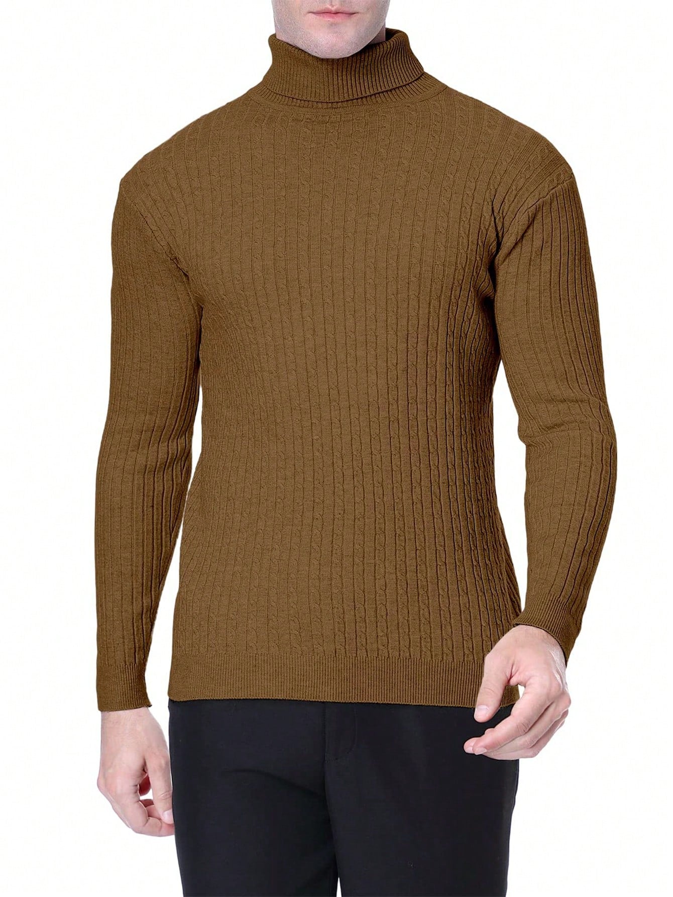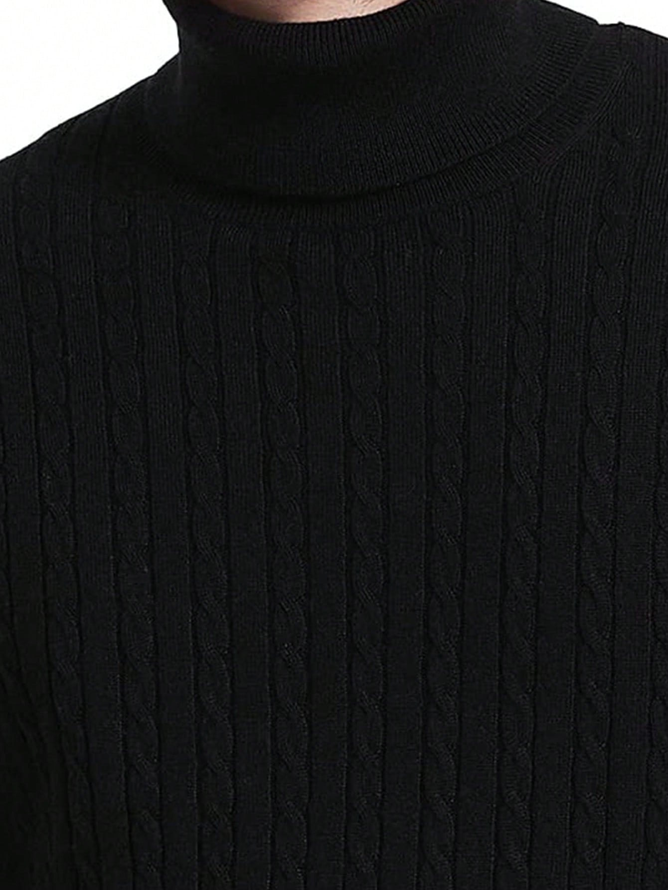 This classic black cable-knit turtleneck sweater is a must-have for timeless style and all-day comfort. Whether layered under a jacket or worn on its own, it provides a polished yet cozy look perfect for any occasion.