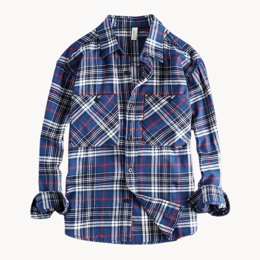 This plaid shirt blends timeless style with a rugged appeal, making it a versatile choice for both casual and layered looks. The green and white checkered pattern brings a fresh yet classic vibe, while the double chest pockets add practicality and detail to the design.